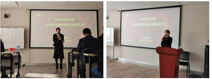 培訓(xùn)由集團風(fēng)控法務(wù)部部長邵淑毅主講,培訓(xùn)課題為《項目合作開發(fā)全流程法律風(fēng)險識別和防范》。邵部長結(jié)合豐富的房地產(chǎn)項目合作開發(fā)投資及法務(wù)管理風(fēng)控經(jīng)驗,聚焦標(biāo)的項目、目標(biāo)公司、交易過程三個維度,詳細(xì)講解了標(biāo)的項目權(quán)屬爭議、開發(fā)可行性、目標(biāo)公司股權(quán)瑕疵、治理結(jié)構(gòu)、項目鎖定、資金安全等共計24項重大風(fēng)險。從全流程風(fēng)險防范的角度,提出四個方面的應(yīng)對措施:充分全面的盡職調(diào)查、合理的交易方案、嚴(yán)謹(jǐn)規(guī)范的合同文本、有效的履約管理。最后,邵部長提出集團法務(wù)及投資人員在工作中應(yīng)務(wù)必盡心盡責(zé)、建立全流程把控理念,在項目風(fēng)險防控中創(chuàng)造價值。