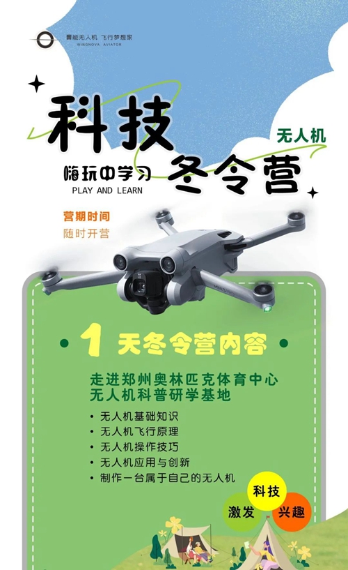 鄭州奧體翼能無人機研學基地是集無人機科普、研學、開發(fā)、應用、賽事運營的綜合服務平臺,不僅擁有1000余平方米的無人機科普教育基地,還擁有無人機駕駛執(zhí)照的培訓資格。寒假期間,依托鄭州奧體中心開闊場館,翼能無人機將科普知識與實操表演完美結合,分別開設1至5天不等的科技冬令營,代領孩子們放飛科技夢,在嗨玩中學習。