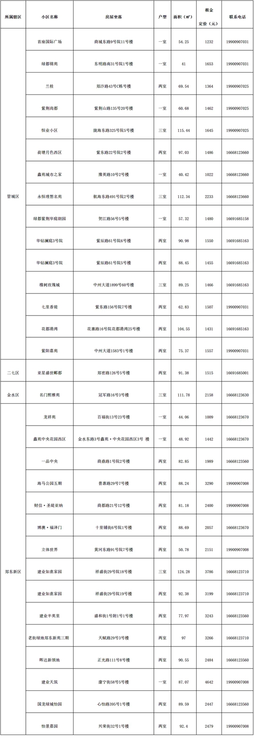 本批次配租房源共計(jì)32套(61間),其中鄭東新區(qū)15套(28間)、管城區(qū)15套(28間)、二七區(qū)1套(2間)、金水區(qū)1套(3間)。水電費(fèi)均為民用水電標(biāo)準(zhǔn),房源精裝修交付,周邊配套設(shè)施齊全,配備家具家電,拎包入住,后續(xù)房源將根據(jù)裝修進(jìn)度情況陸續(xù)配租。運(yùn)營單位為鄭州城發(fā)安居有限公司。聯(lián)系電話:4001261666。