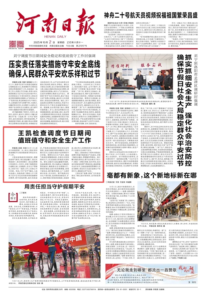 10月1日,國慶中秋假期第一天,省長(zhǎng)王凱在鄭州檢查調(diào)度節(jié)日期間值班值守和安全生產(chǎn)工作。