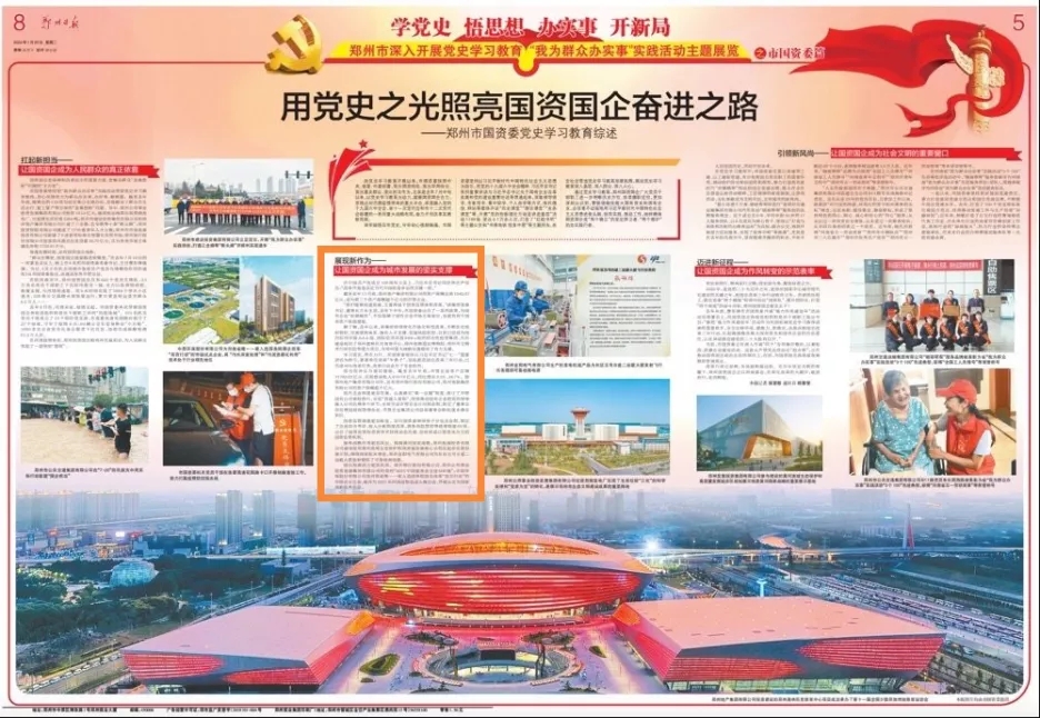 剛剛過去的2021年是我們黨建黨一百周年。在建黨百年的重要時刻,黨中央深謀遠慮,鑒往知來,在全黨深入開展黨史學(xué)習教育活動,從百年黨史中汲取新時代趕考路的智慧和力量。1月25日,鄭州市深入開展黨史學(xué)習教育“我為群眾辦實事”實踐活動主題展覽之市國資委篇《用黨史之光照亮國資國企奮進之路--鄭州市國資委黨史學(xué)習教育綜述》被《鄭州日報》刊發(fā)、《人民日報》客戶端轉(zhuǎn)載。